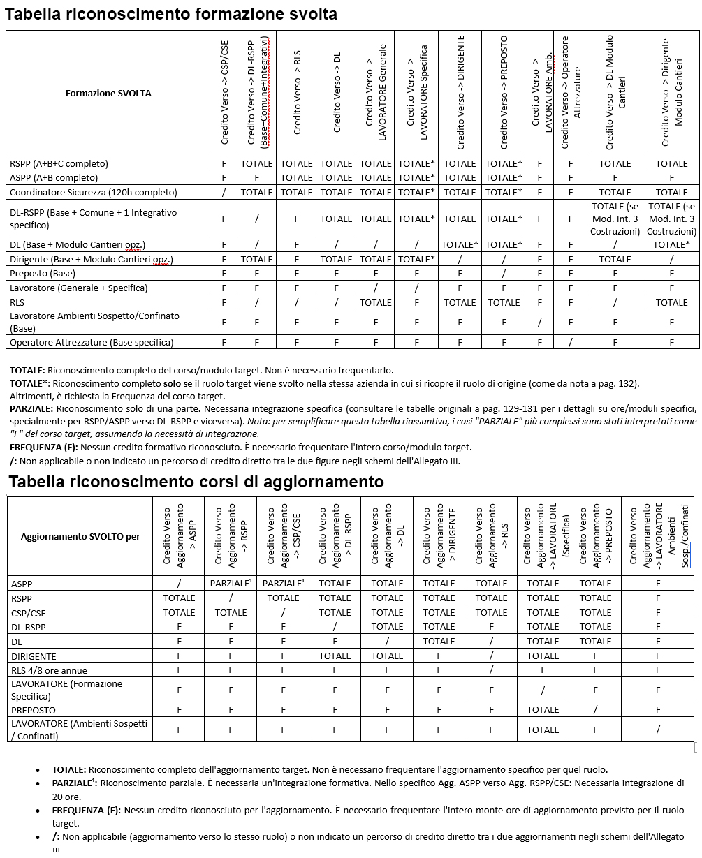 Nuovo Accordo Stato Regioni sulla formazione: tutte le novità - Schema riassuntivo riconoscimento crediti